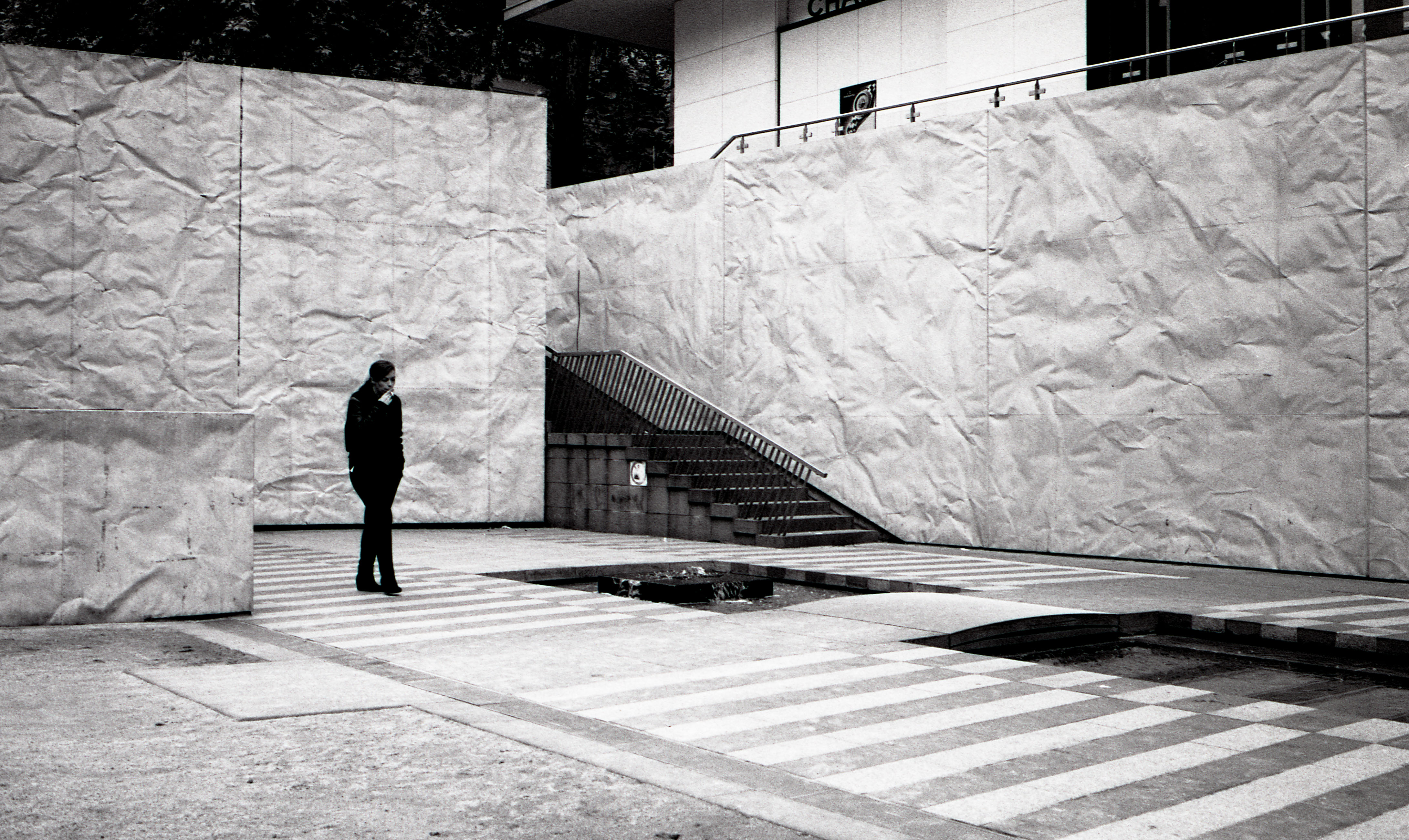 There is a textured wall on the Collins Street side running right along the footpath. This is akin to shooting fish in a barrel for street photography.