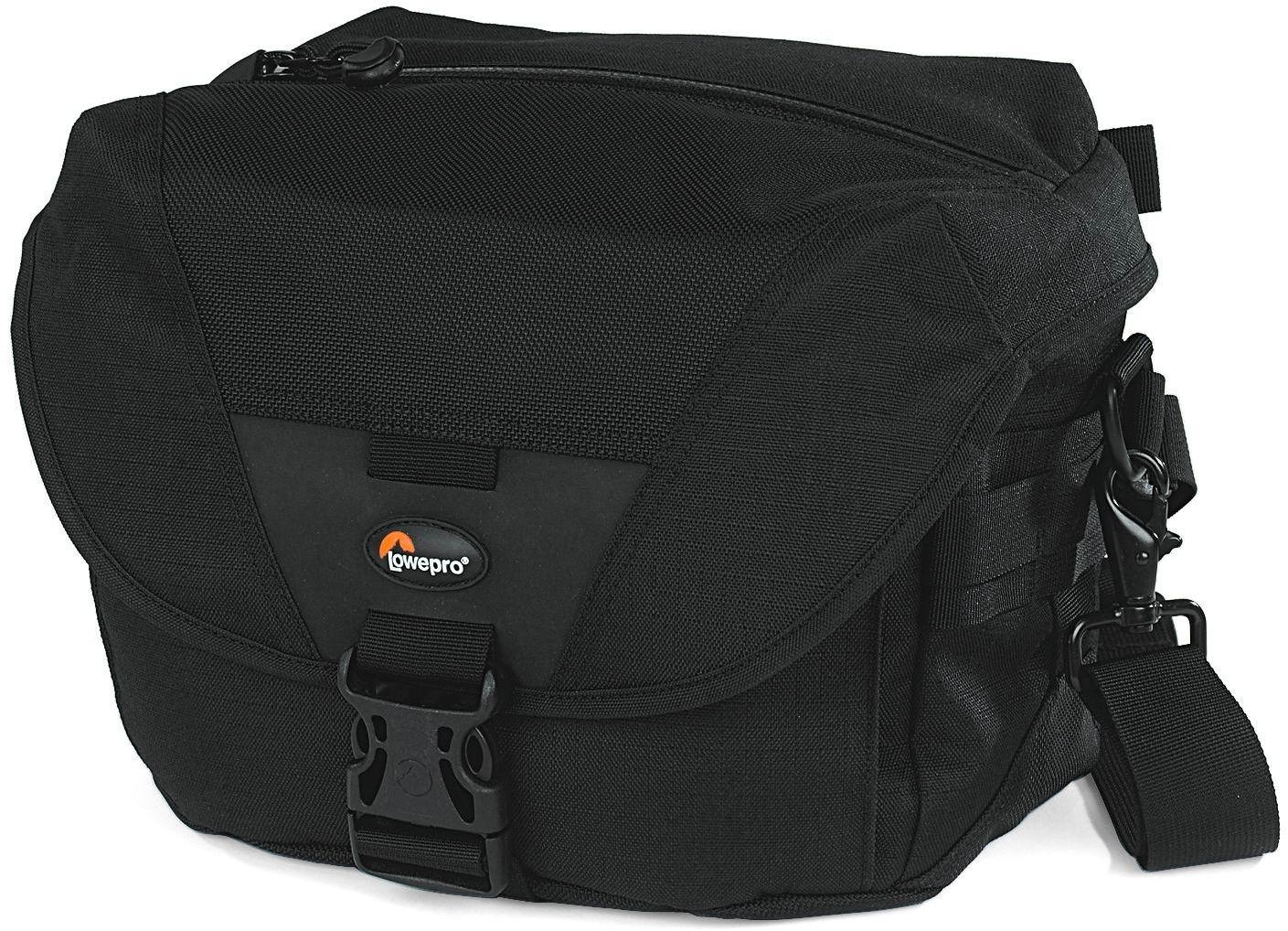 The Lowepro Stealth Reporter is freaking awesome. It is big enough for a decent sized body with a lens, plus an extra lens, and various accessories. The size forces you to prioritise what you take.