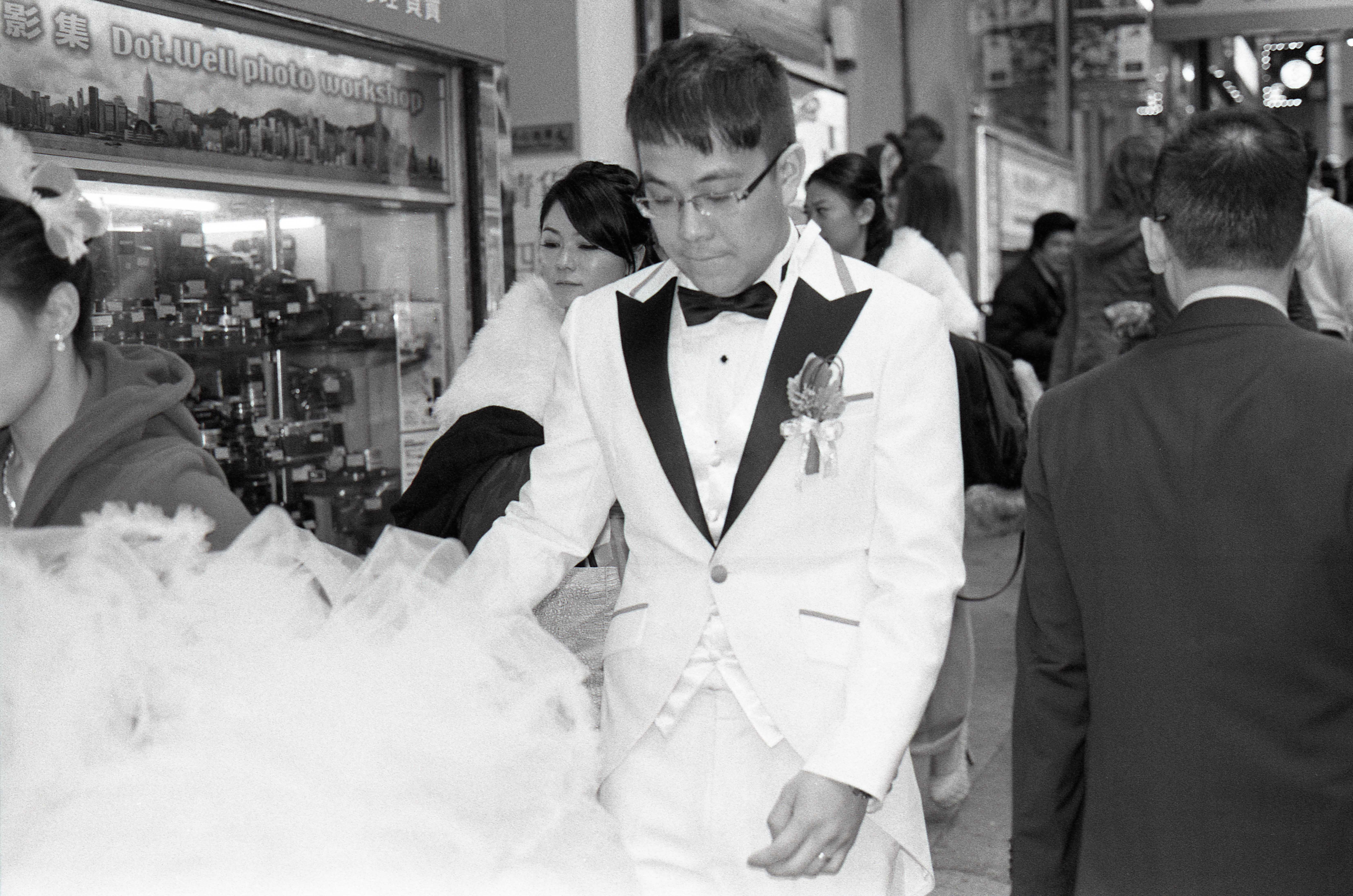 There were quite a few weddings I came across in Hong Kong – here is another fave that didn’t quite make the cut, but I like. Based on this image, I need to do a bit more work using a flash with street photography! Loving the location here outside of the Dot.Well store at Champagne Court – the #1 spot for second hand film gear in Hong Kong…