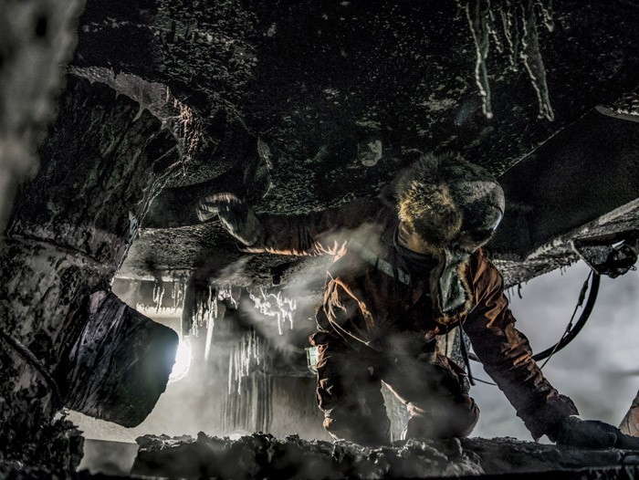 The image is remarkable in terms of the situation. Getting in and unders some massive machinery, in the freezing conditions, to get the shot, is just wonderful. The HDR has stolen the soul of the image, in my opinion. It almost looks faked, like a CGI effect in a movie. The extra level of detail in tones that HDR gives is visually distracting. I find it disconnects me from the image. My eyes are unfamiliar with the level of detail and struggles to recognise it as a scene from real life as opposed to a painting or drawing.