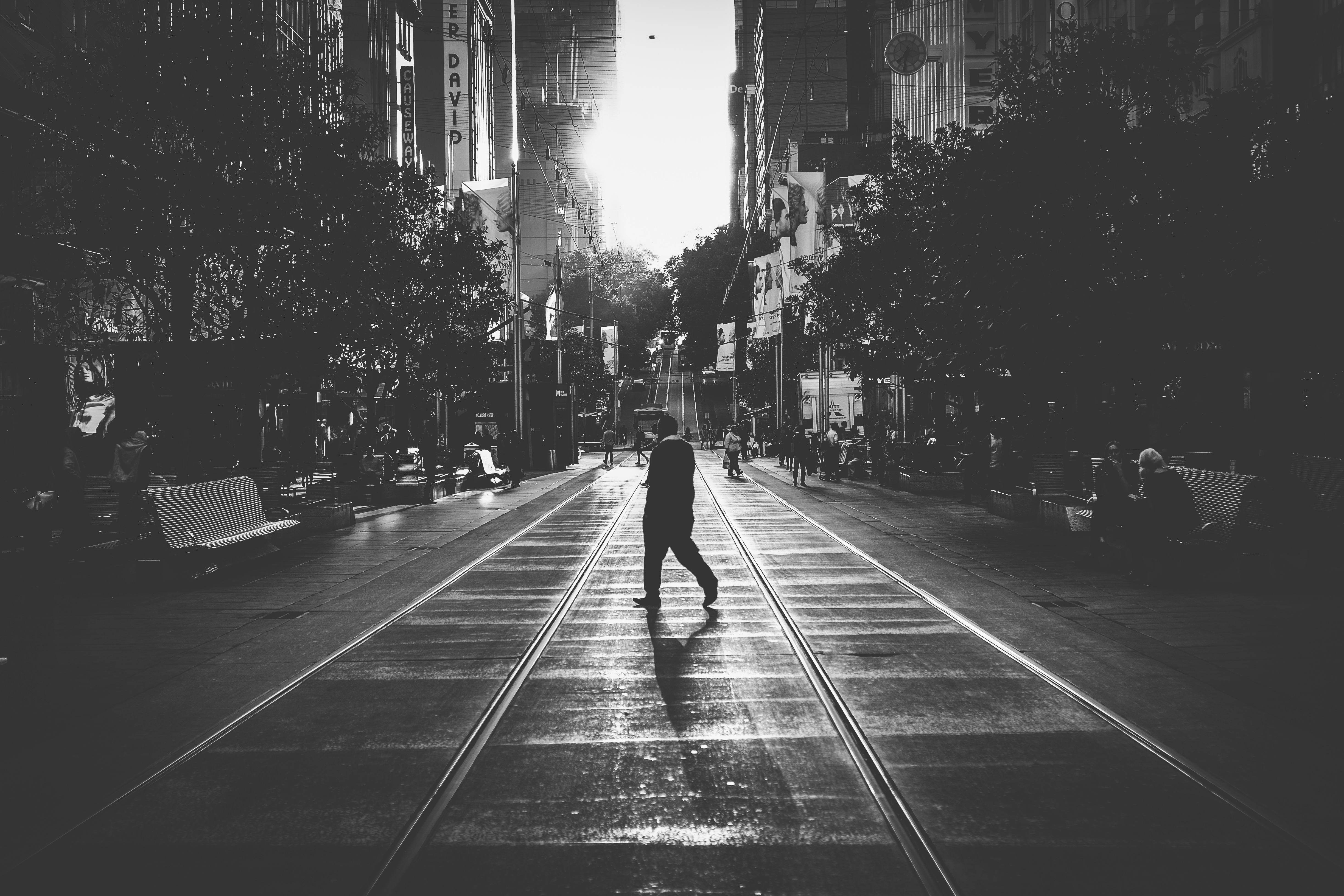 Joe is quite skilled at using lines, both straight and curved to create images. In this classic shot, the tramlines create a strong leading line to the horizon upon which the subject can exist.