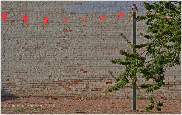 Again, less is more. This image is of a deserted car yard in Echuca. Andrew’s ability to spot simple compositions that are free from clutter is quite advanced. I like the muted variations in colour and tone on the brick wall which contrasts with the life of the tree.